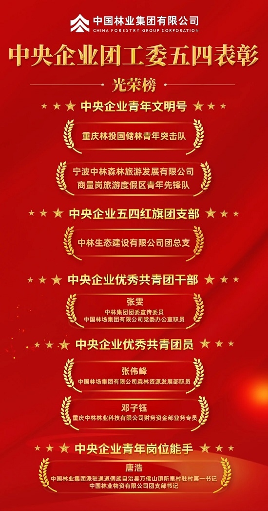 近日,中央企业团工委隆重表彰了中央企业先进青年集体和先进个人,命名了中央企业青年文明号。中林集团3个集体和4名个人榜上有名。