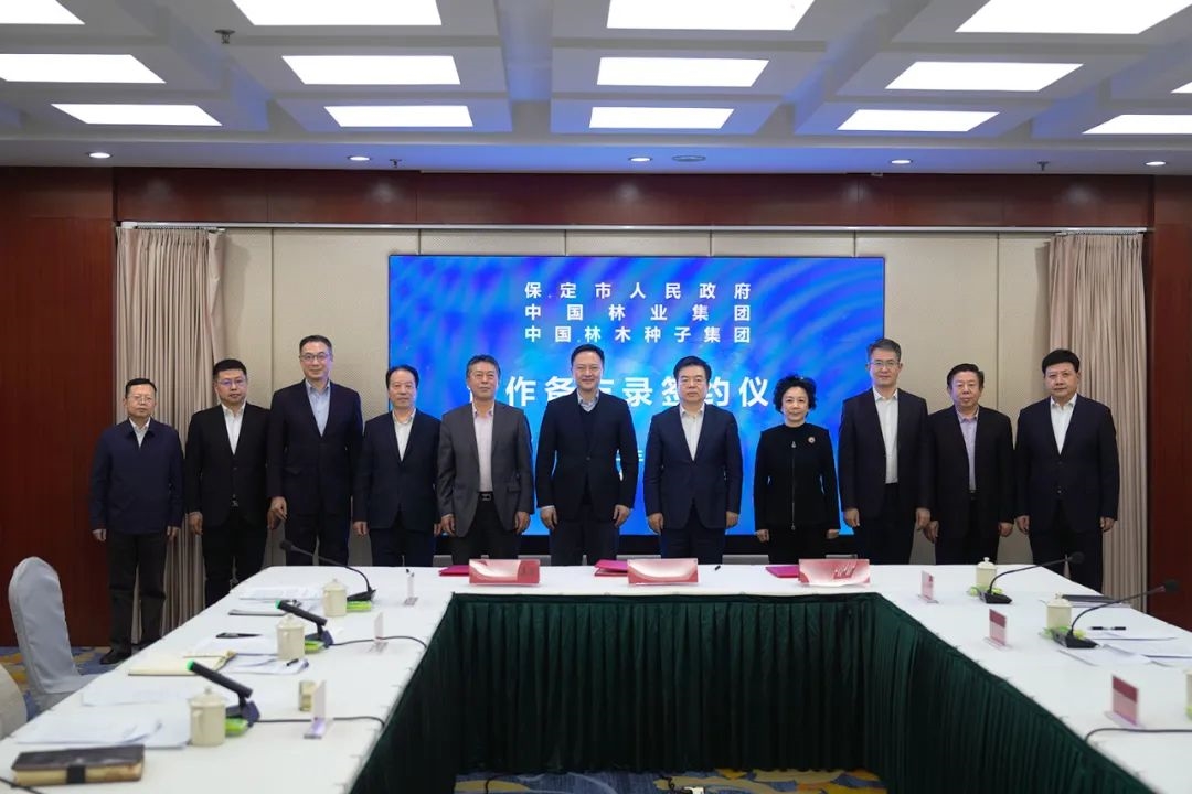 期间,中林集团、保定市人民政府、中国林木种子集团共同签署三方合作备忘录,商定进一步落实中林集团与保定市人民政府签署的战略合作协议,深入贯彻国家“双碳”战略,共同建设中林保定国家战略储备林项目,有序推进木本油料产业,以基地+园区的合作模式,引领示范产业高质量发展,进一步明确合作主体以及相关业务内容。