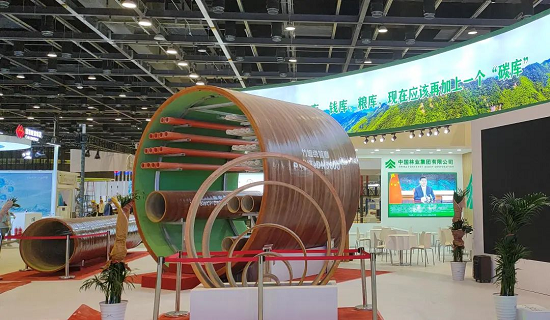 2022中国国际服务贸易交易会,一个企业展区上放置的巨大管廊吸引了众多观众驻足。这是来自中国林业集团的竹缠绕管廊,它的直径达到3.6米,一眼望去,在亮点纷呈的环境服务展区中依然足够显眼。管廊只是中国林业集团展出的竹缠绕复合材料产品之一。除管廊外,还有大口径压力管道、整体组合式房屋、高铁车厢等产品,由于空间有限,只能用照片来展示。