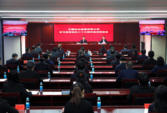 报告会在集团公司系统内引发了热烈反响。大家都深受启发、收获满满,纷纷表示要继续深入学习领会党的二十大报告蕴含的重大意义、科学体系、丰富内涵和实践要求,进一步把思想和行动统一到党的二十大精神上来,紧密团结在以习近平同志为核心的党中央周围,以更加坚定的决心意志和更加奋发有为的精神状态推动我国林业产业高质量发展,助力“双碳”目标实现,真正把党的二十大精神转化为干事创业的生动实践。