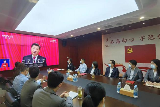 集团总部领导班子成员和党员干部集体收看开幕会盛况