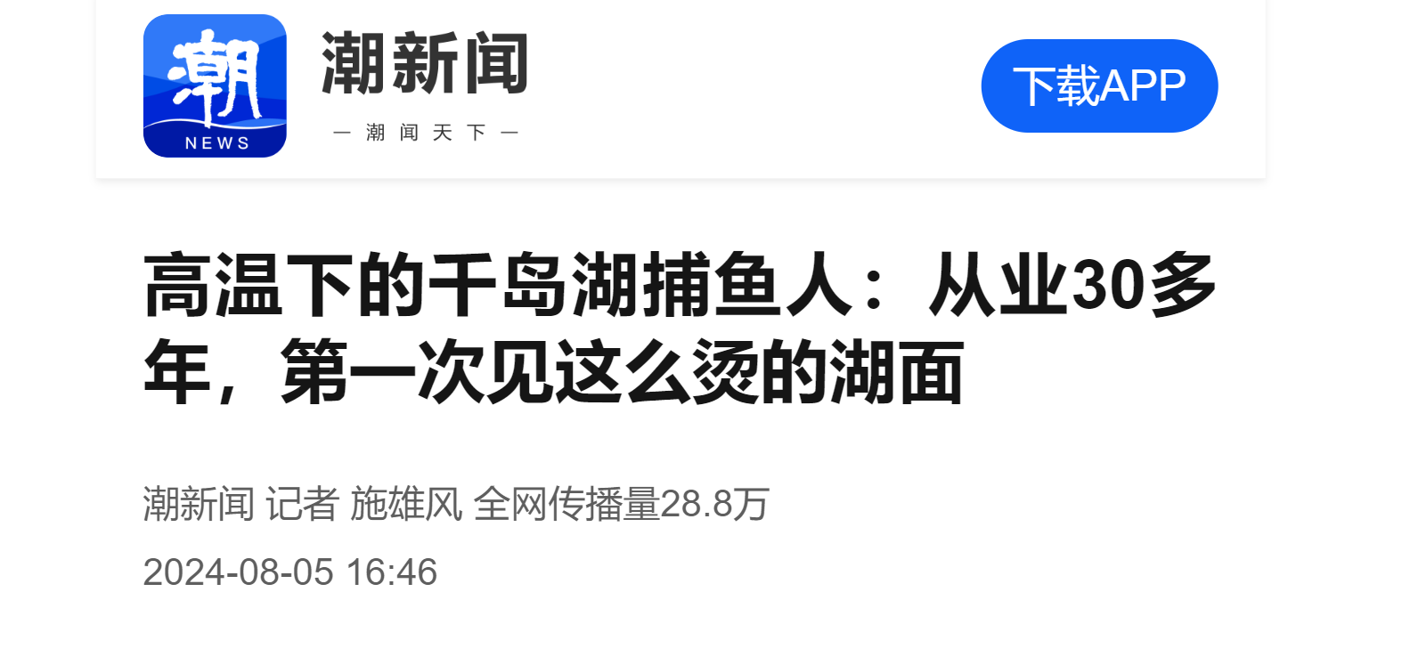极端高温下的千岛湖捕鱼人: