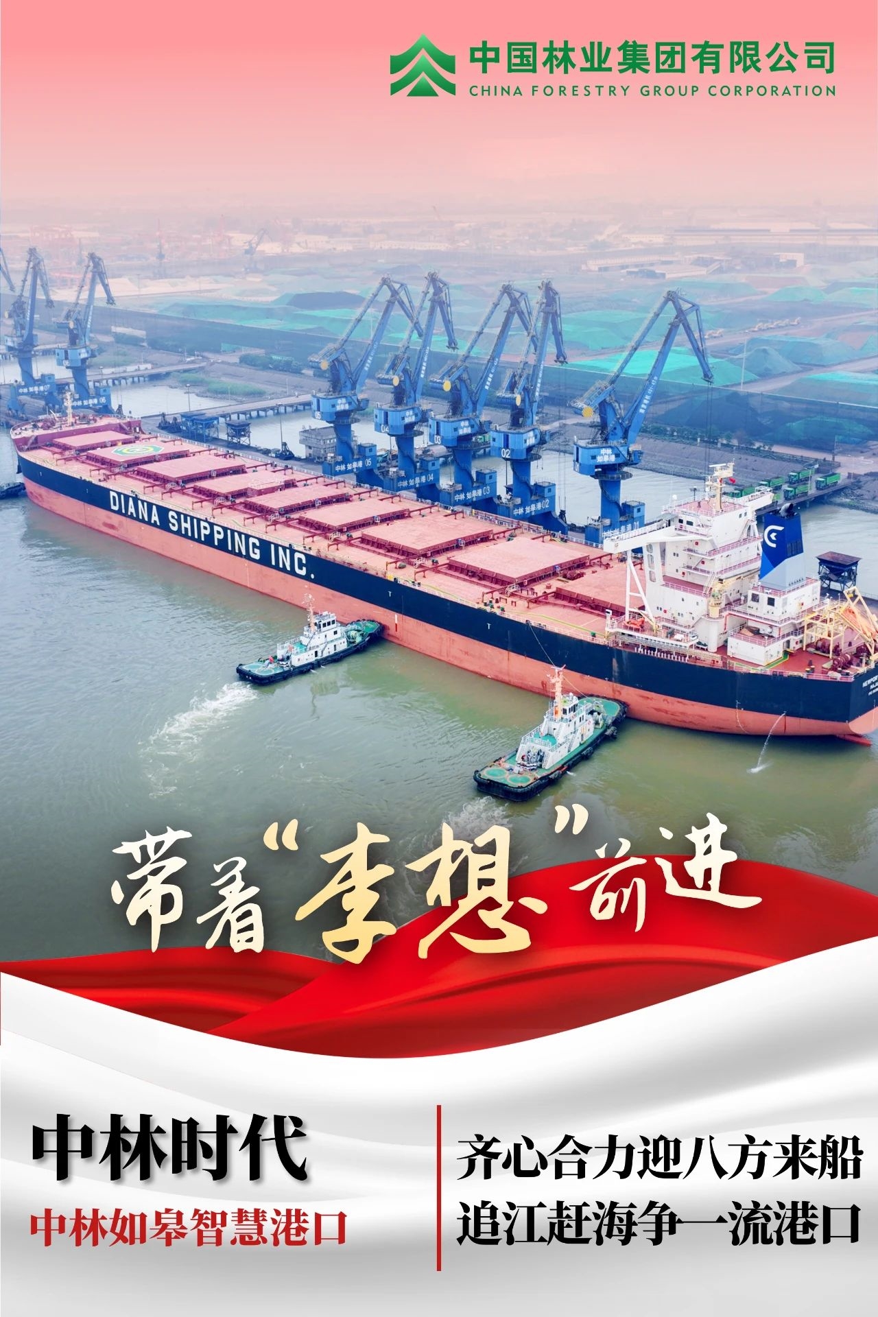自2023年首次迎来长度达到300米的好望角型船舶后,中林时代如皋港成功停靠同类超大型船舶数条,单船作业效率大幅提高,吞吐量实现接连突破。中林如皋港人不忘初心、锐意进取,在港口发展的道路上大步前进。