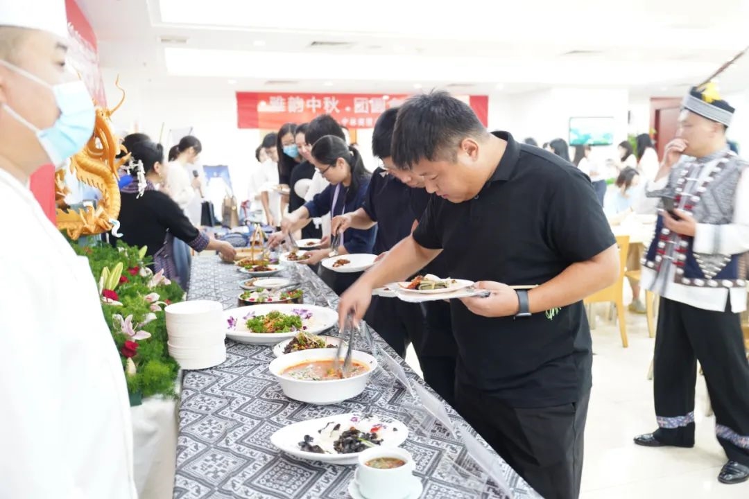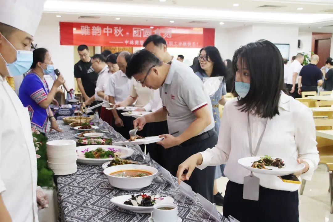 9月6日,中林集团在总部食堂举办首届通道美食节活动,邀请定点帮扶的湖南省怀化市通道侗族自治县(下称通道县)当地厨师,选用通道县地道食材和帮扶农特产品,为总部和在京企业职工现场制作了侗家红皮肉、侗家生鱼片、香炒蜂蛹等二十五味通道县特色美食,并开设了特色美食窗口,提供油茶、湖南米粉等地方小吃,讲解了侗族合拢宴传统习俗。活动现场还设置了侗族文化体验区,展销非遗传统手工艺品——侗锦,让广大干部职工近距离体验通道县的侗族饮食文化和民俗风情,厚植爱农助农帮扶情怀。
