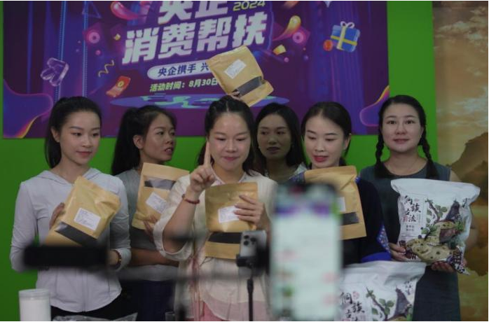兴农周期间,中林集团驻村第一书记、通道县工商联、网络红人及帮扶商户,参加了由国务院国资委指导举办的央企帮扶特色农产品展销会活动,为帮扶产品站台代言,推出品鉴试吃、互动解说、特惠选购环节,现场人潮络绎不绝,火热的现场气氛点燃了大家的帮扶热情,吸引不少消费者驻足品尝下单。此外,中林集团邀请通道县网络红人,在帮扶直播间开展兴农周助农直播活动,助力山货出山,累计帮销额达108万元。