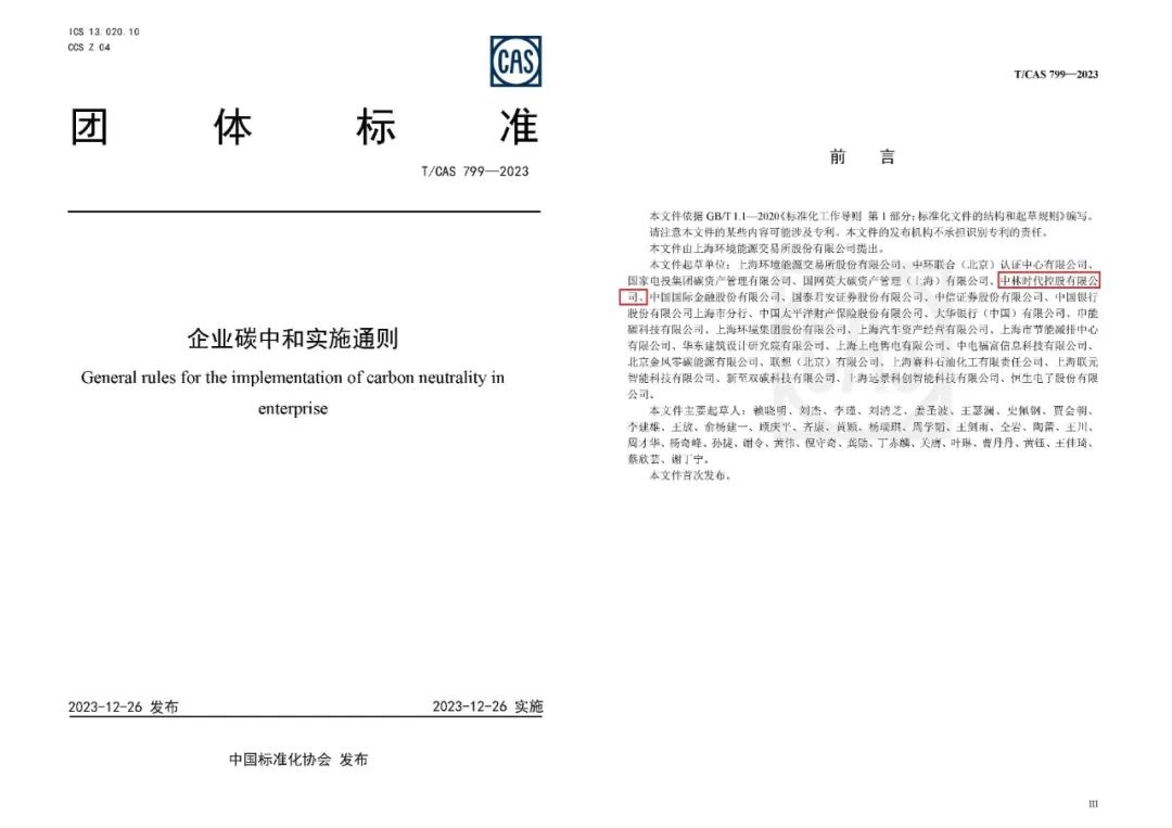 喜讯 | 中林时代控股积极践行行业双碳标准引领,参编4项标准已发布!