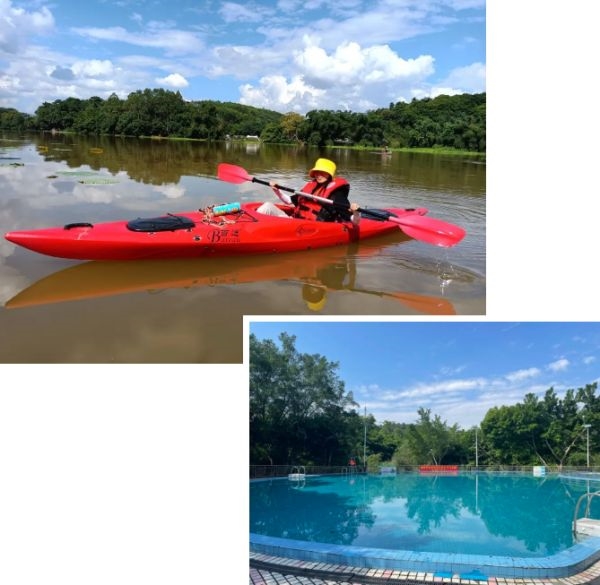 或者在泳池中、在凤江上尽情地享受游泳、桨板、独木舟等水上运动