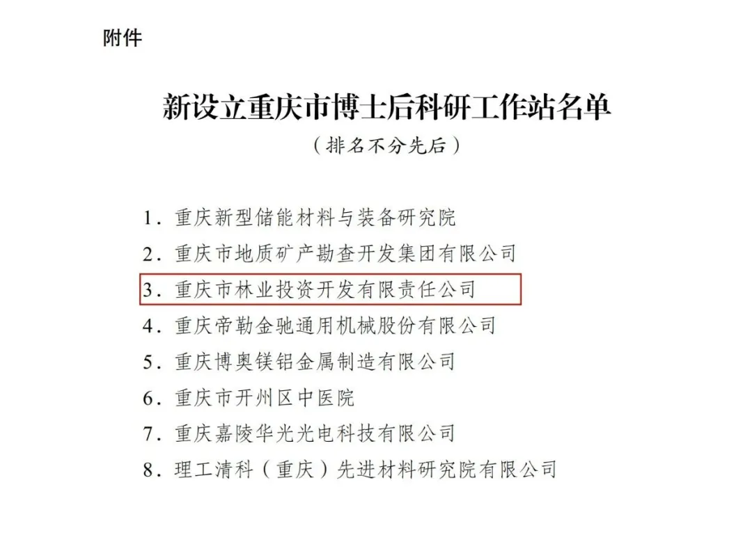 喜讯!重庆林投公司获批设立博士后科研工作站2024-05-14