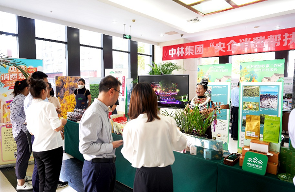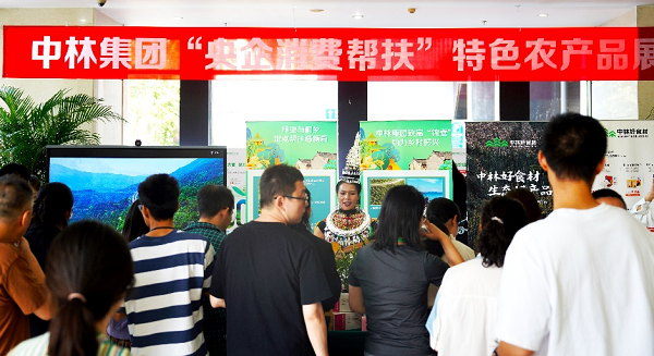 同时,在集团大楼一层,还举办了通道县特色农产品展会,活动主要由3个展区组成,依次为通道县农产品展示区、侗族少数民族文化感受区和中林特色产品展示区3个区域组成。通过展示中林集团定点帮扶县帮扶企业的特色农产品,增加集团员工对定点帮扶县通道县特色农产品的了解。集团员工通过扫描“央企消费帮扶”平台链接二维码,在央企馆“中国林业集团有限公司”平台还可以采购通道特色农产品。