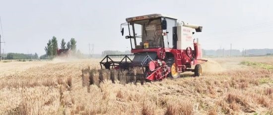 伴随着机械轰鸣,一茬茬金黄饱满的麦穗被卷进收割机,脱穗、分离、装车……粒粒金黄即将“颗粒归仓”。