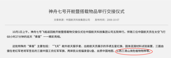 2008年“神州七号”载人飞船成功发射升空,珙桐种子随飞船一起升入太空。它成为我国首次对珍稀濒危的林木进行航天诱变育种实验的对象。