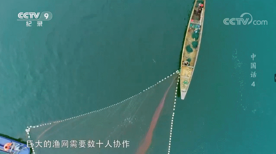 巨大的渔网需要数十人协作才能拉动