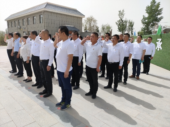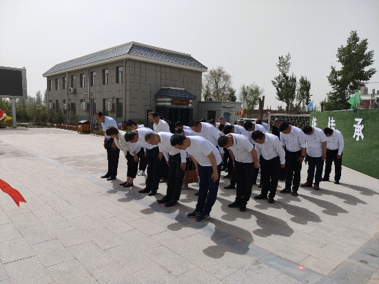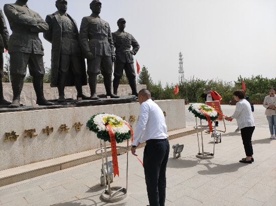 青山绿水长留生前浩气,苍松翠柏堪慰逝后英灵。在红西路军中共甘州中心县委纪念园,全体党员列队肃立,向革命烈士默哀,缅怀革命英烈。在低沉婉转的《献花曲》中,向革命烈士敬献花篮,重温入党誓词。