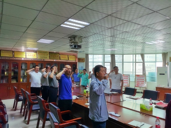 党委委员、总经理罗志刚带领全体党员面对鲜红的党旗重温入党誓词。庄严肃穆的重温入党誓词活动,使每一位党员干部再一次接受心灵的洗礼,进一步坚定了立场信念。